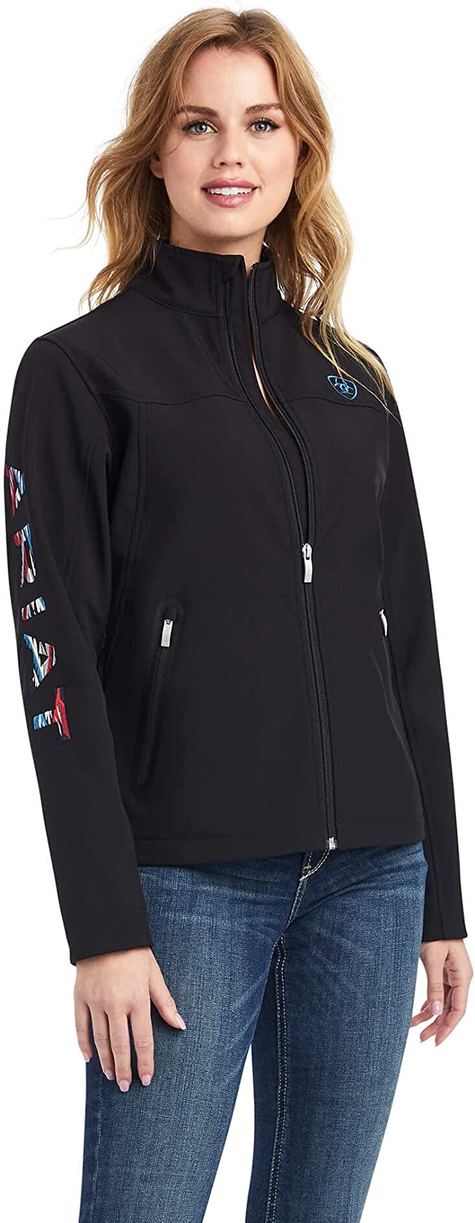 ARIAT Women's Team Logo Softshell Chimayo Jacket Black/New Mexico Navy Print 10042185
