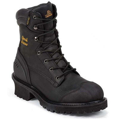 The Chippewa 8" Black Oiled Logger Boot 55056 is constructed with a Goodyear Storm welt construction and a waterproof bootie construction to help seal out water and increase the life and wear of your work boots. This durable boot is made with a steel shank for stability and comes with a comfortable and padded Bontex insole. This durable work boot is made with an ASTM and EH Rated composite safety toe.