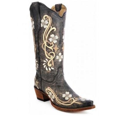 L5175 Circle G Ladies’ Distressed Black Floral Boots