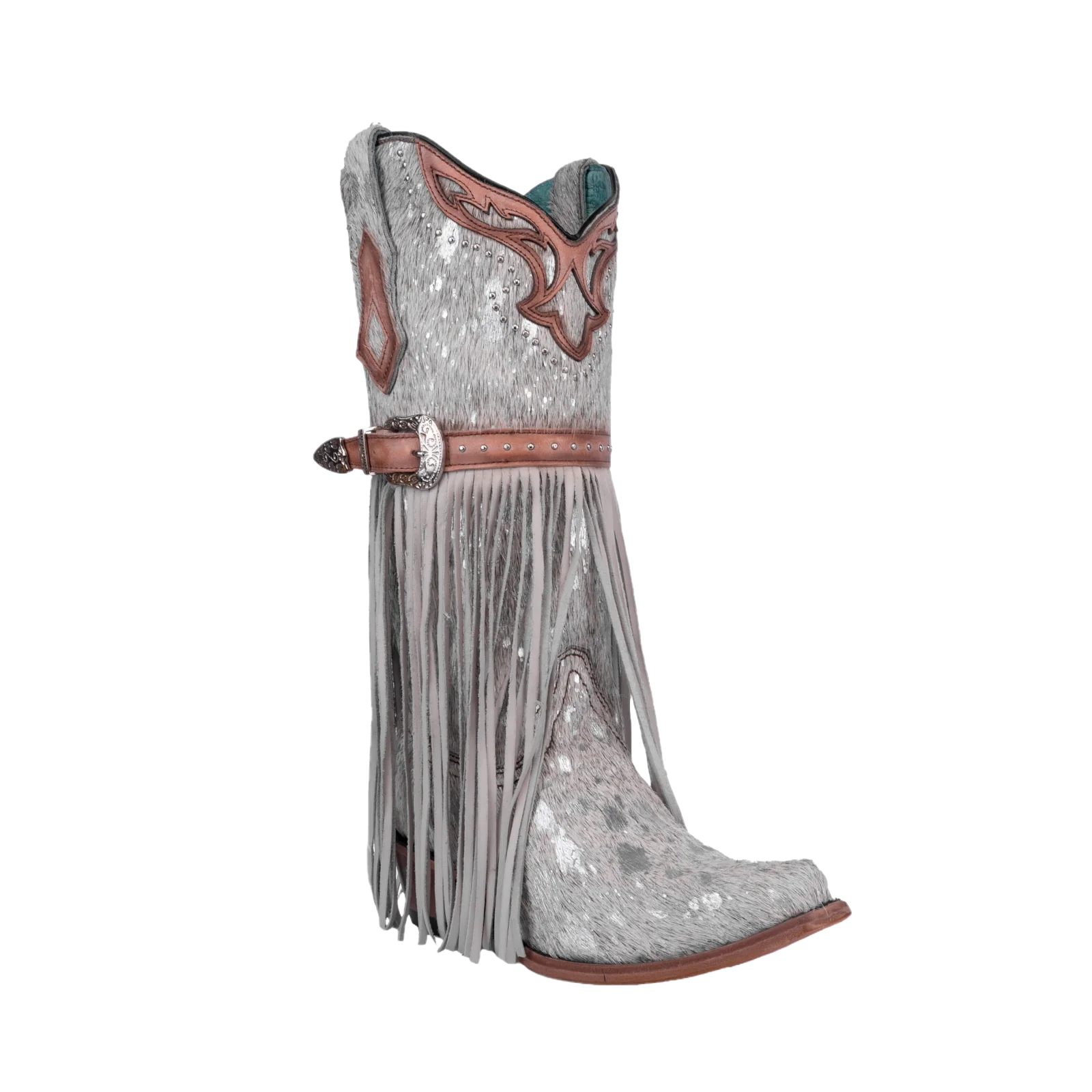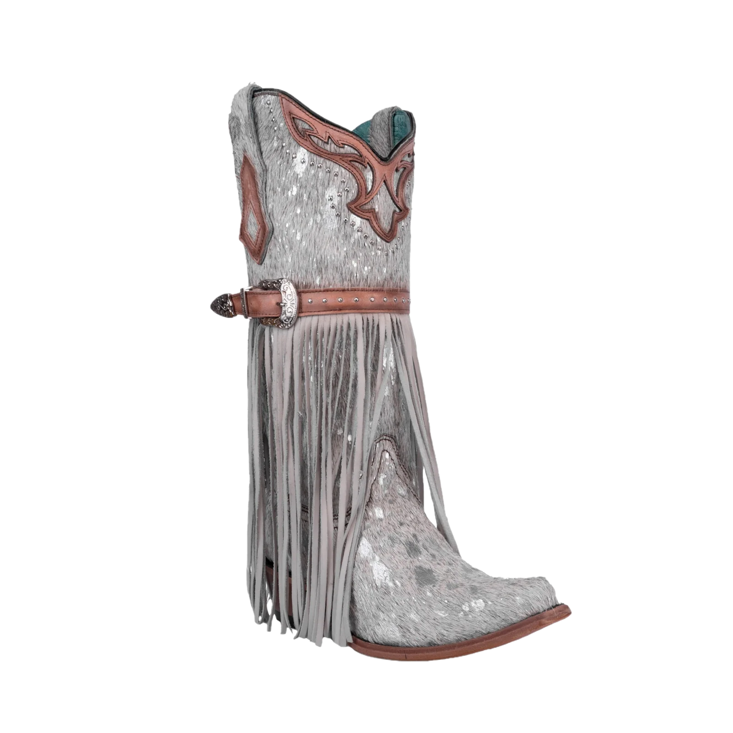 Corral Ladies Fur Harness & Lamb Fringe Snip Toe Boots C4081
