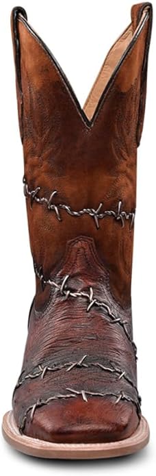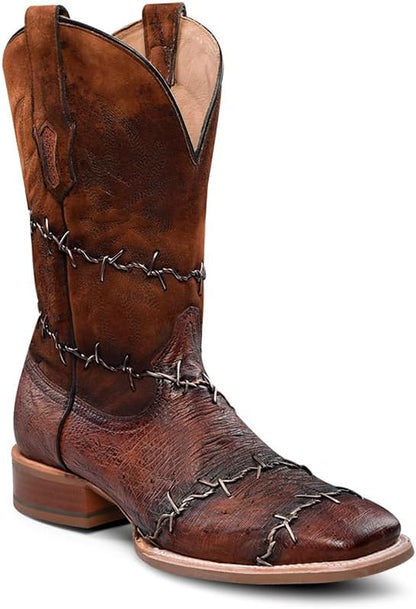 CORRAL MEN'S BROWN-SHEDRON OSTRICH EMBROIDERY & WOVEN WIDE SQ. TOE A4555