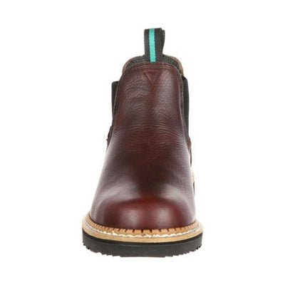 Part of the Georgia Boot® brand, the Georgia Giant Waterproof Romeo Boot doesn't just look good, it's well-constructed and comfortable. Made with the Georgia Waterproof system, these boots keep water out while letting air in. Your feet stay dry, guaranteed. The polyurethane "Georgia Giant" outsole resists oil, chemicals and slips. It's also non-marking, cushioning and flexible. There's also an oil-resistant bumper guard. Goodyear® welt construction added durability. Inside is steel shank, EVA midsole, mesh-covered cushion insole and high-performance lining, providing added comfort and stability. This boot is made of full-grain leather with pull tabs.