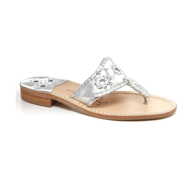 Go ahead, wear these Jack Rogers Hamptons all year round. They're that versatile and that divine, and they feature beautiful metallic leather upper on a stacked leather heel. The sandal is handmade and each one has the size handwritten in the upper or on the sole next to the vamp.