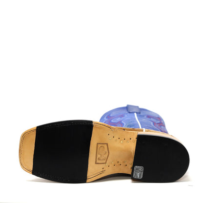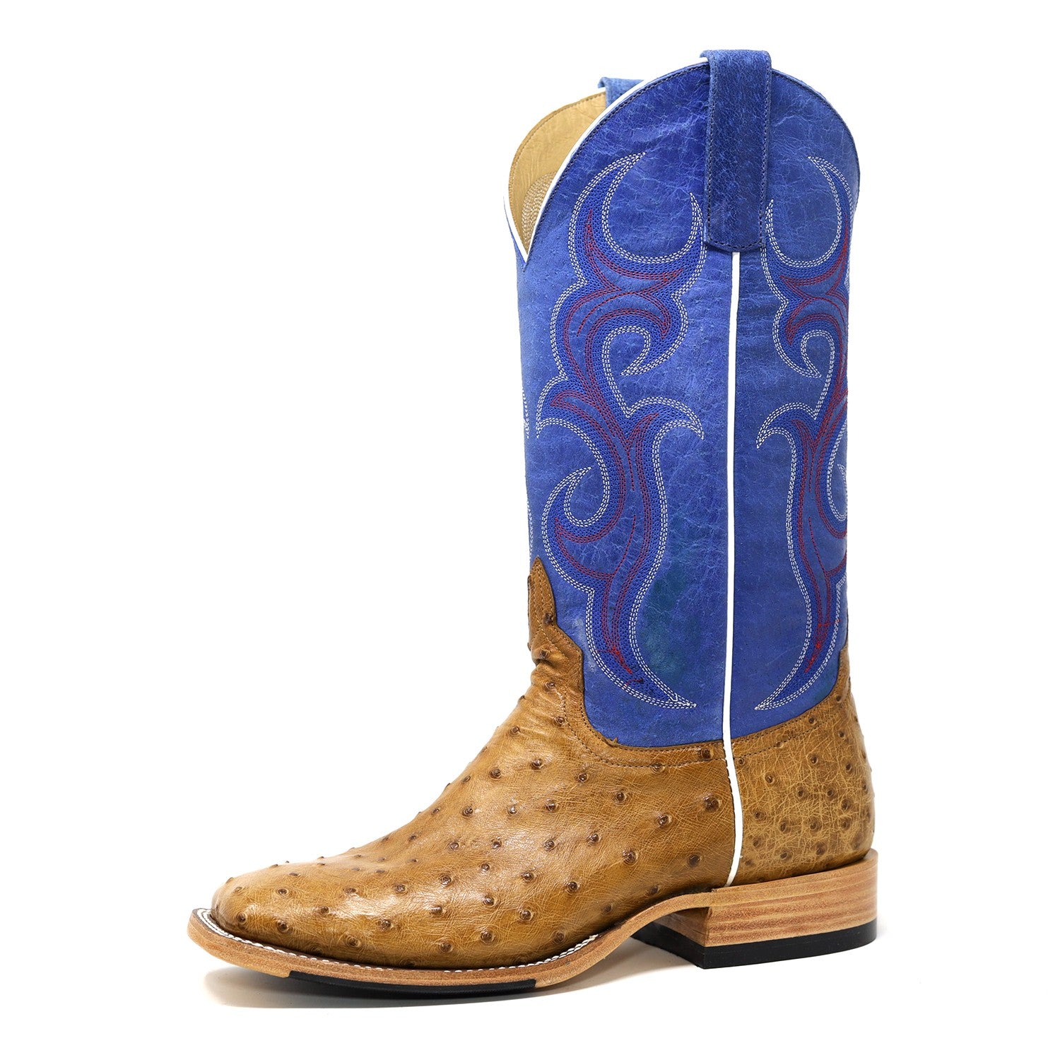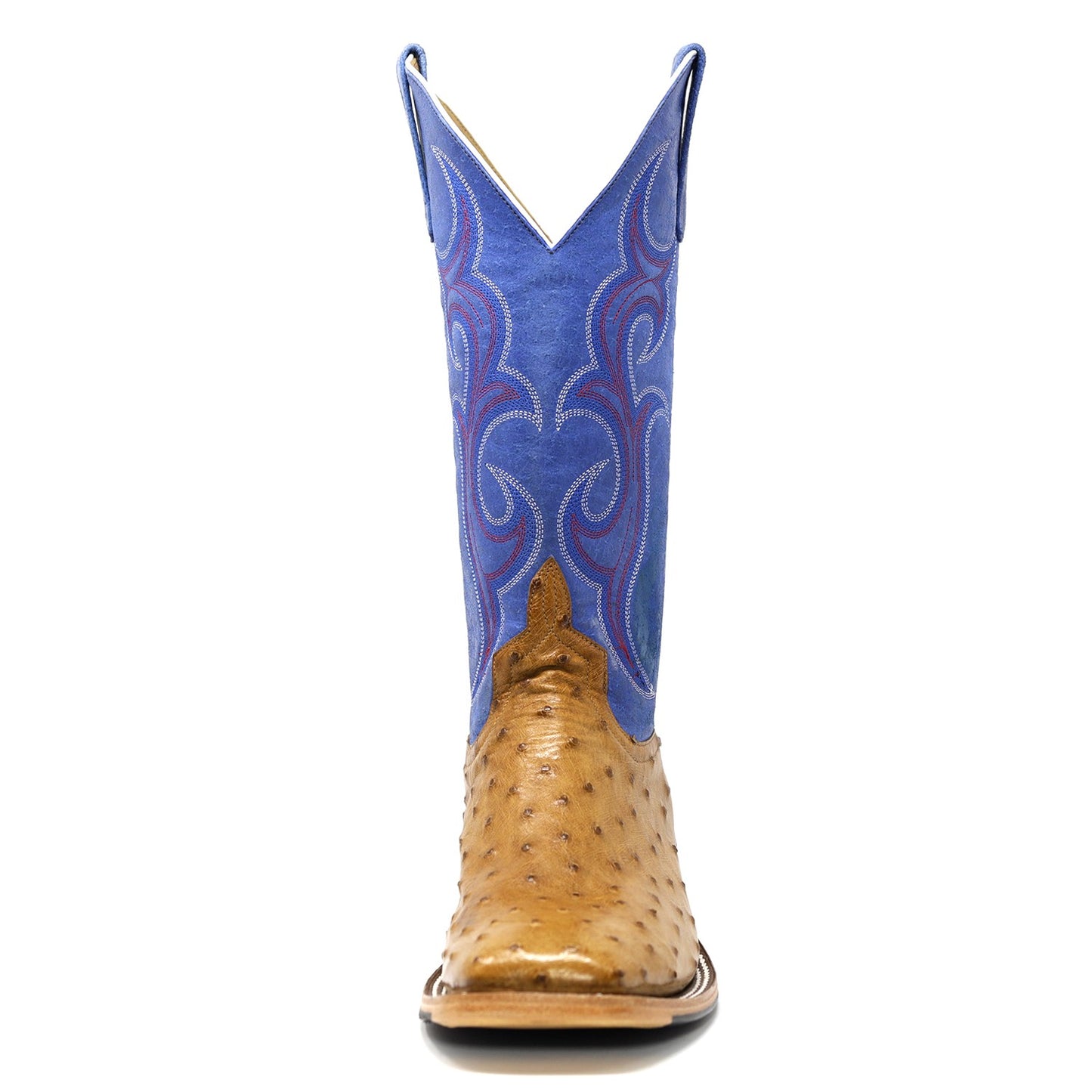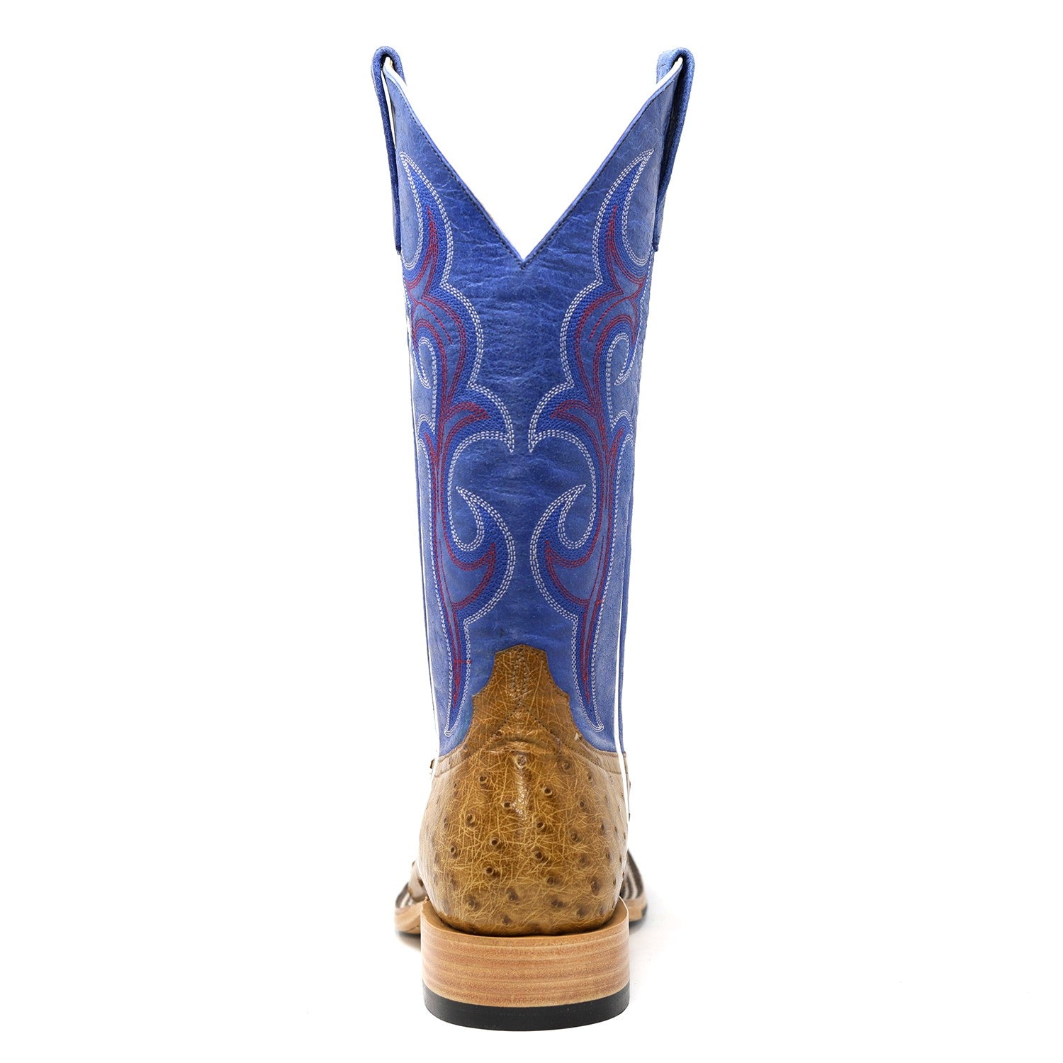 HORSEPOWER MEN'S ANTIQUE SADDLE OSTRICH & ROYAL BLUE SQUARE TOE BOOTS HP8005