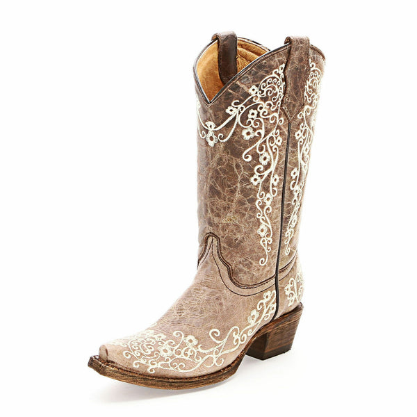 KIDS YOUTH CORRAL COWGIRL BOOTS A2773-FLORAL EMBROIDERED