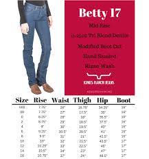 The Kimes Betty Ranch 17 jean has everything you love about the original Betty but enhanced with a tri-blend of materials to help with the rebound and improve wearability. These jeans provide longevity and durability making them a great jean for work or play!
