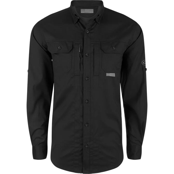 We took our heritage Wingshooter and gave it a complete overhaul for the Wingshooter's Trey Dobby Button-Down Long Sleeve Shirt. We constructed the Trey out of a waffle dobby made of 93% Polyester and 7% Spandex fabric. The performance fabric is lightweight at 102 GSM which allows moisture to wick quickly from the body. It also has a UPF30 rating for sun protection and has a natural stretch for ease of movement. The Drake Wingshooter's Trey Dobby has a classic fit, a hidden button-down collar, two button-through flap chest pockets, and a vented cape back along with a laser punched vented back. The pocket system includes a hidden zippered pocket on the right and a Magnattach closure behind the left pocket. It has a sculpted hem which allows you to wear tucked or untucked. Inside the hem is a built-in sunglass wipe. The long sleeves have an adjustable cuff to use when you need to roll up your sleeves. We took a classic and added a ton of technical features, creating a new Drake standard in performance shirts.