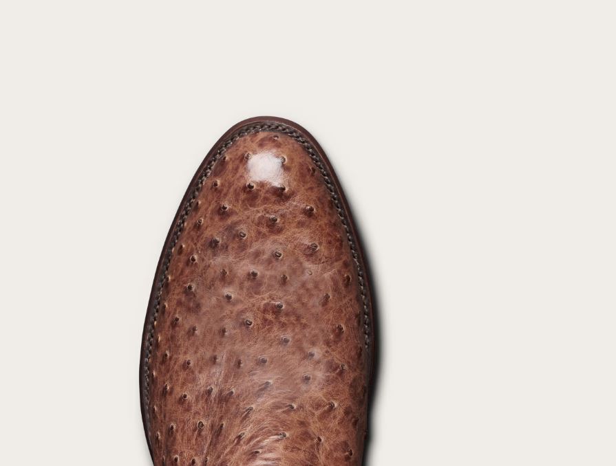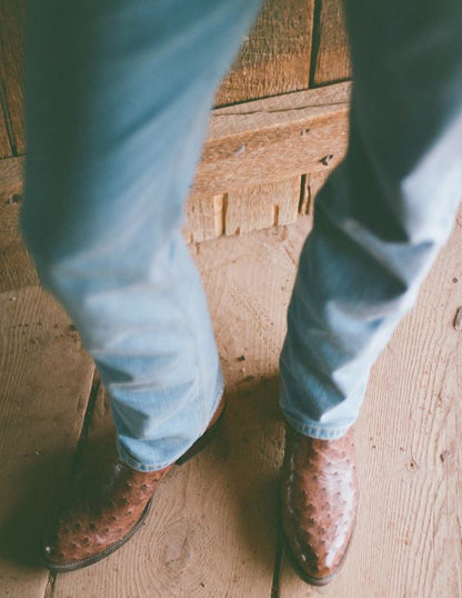 An icon for the modern era, The Wyatt showcases the rich natural pimpling of exotic full-quill ostrich leather in our classic cowboy profile. A sweeping, nine-row stitch pattern adorns its leather shaft, a tri-layer insole anchored by a steel shank provides optimal support, and a hung leather lining brings breathability to its glove-like fit. All handcrafted with a ¾ Goodyear welt, this fine dress boot combines the slipper-like comfort of ostrich leather with the superior quality you expect from Tecovas. Whether you’re out on the town or in the office, The Wyatt promises pure Western style for every occasion.