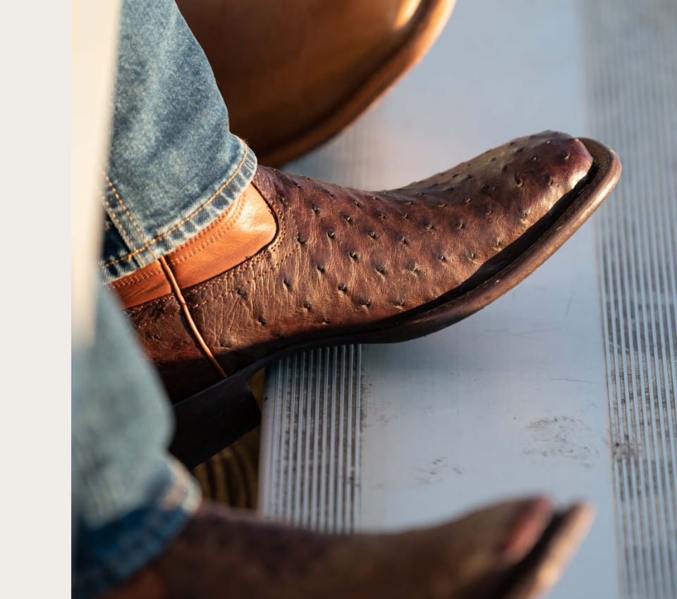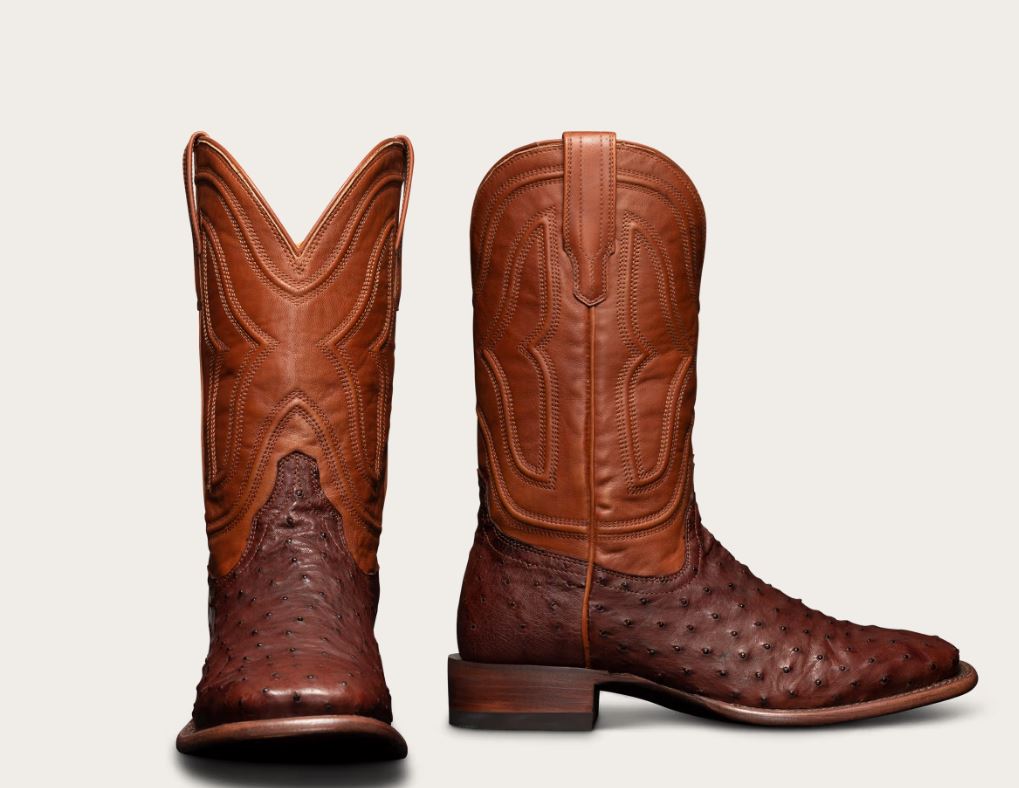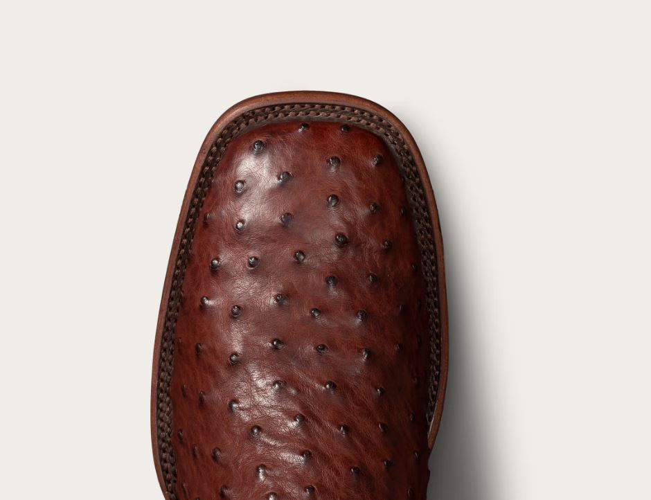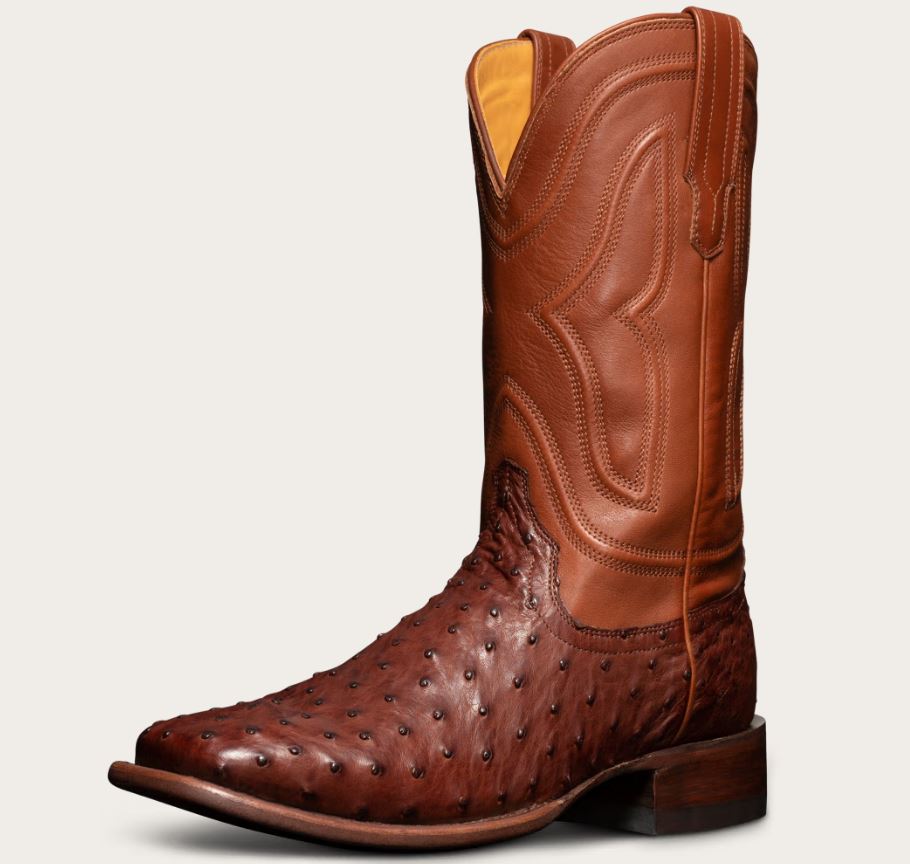 Our broad square toe boot in full-quill ostrich stuns. Features a two-tone shaft and vamp, double stitched welt, 1 ½” straight heel, and a 12” shaft with a new Tecovas original cording pattern. It’s a classic square toe boot in our most popular exotic hide. The Emmitt is made for special occasions with an edge that is pure cowboy.