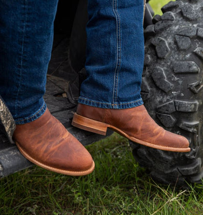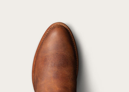 The Earl is the ultimate dependable roper boot, crafted for versatility without sacrificing style. Its clean, unembellished vamp showcases ultra-soft, hand-burnished cowhide or durable goat leather that develops a rich patina over time, making it easy to wear anywhere—from running errands to special occasions. Designed with practicality in mind, it features a slightly shorter 1 ⅛” stacked leather heel for all-day comfort. A durable leather sole, reinforced pull straps, and ¾ Goodyear welt construction ensure lasting quality, while the cowhide lining enhances the fit and feel. Dressed up or down, The Earl is built to be your trusted, timeless companion.