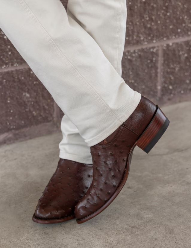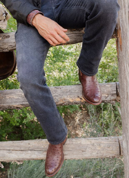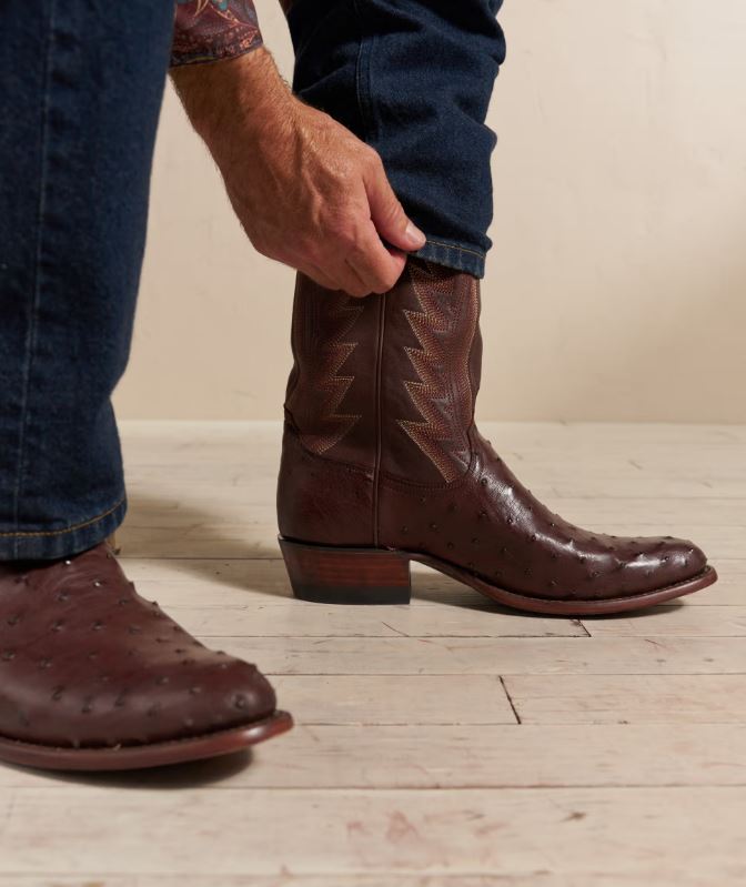 An icon for the modern era, The Wyatt showcases the rich natural pimpling of exotic full-quill ostrich leather in our classic cowboy profile. A sweeping, nine-row stitch pattern adorns its leather shaft, a tri-layer insole anchored by a steel shank provides optimal support, and a hung leather lining brings breathability to its glove-like fit. All handcrafted with a ¾ Goodyear welt, this fine dress boot combines the slipper-like comfort of ostrich leather with the superior quality you expect from Tecovas. Whether you’re out on the town or in the office, The Wyatt promises pure Western style for every occasion.