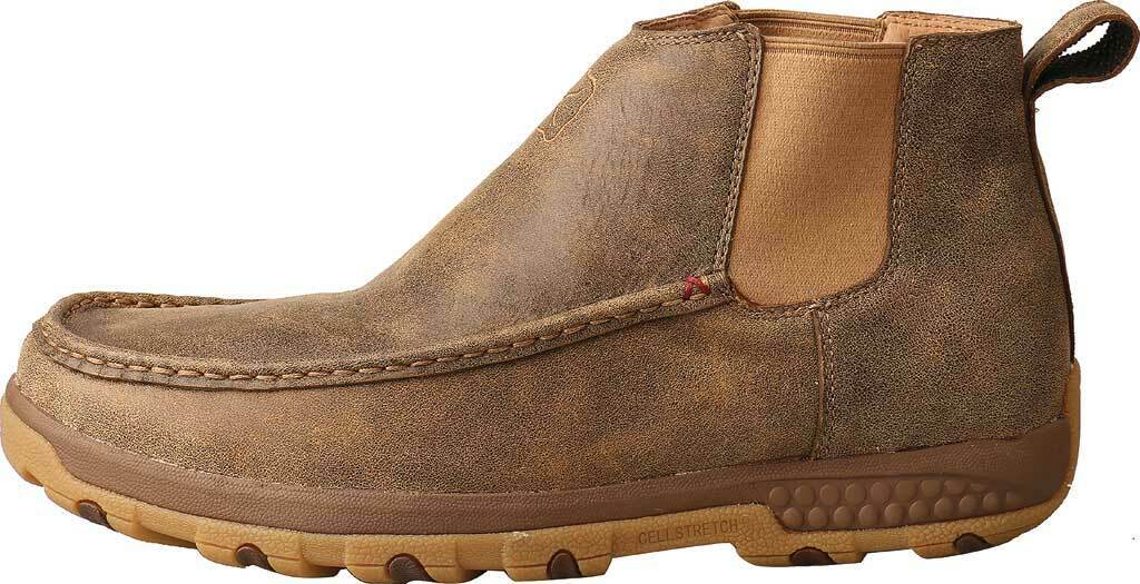 Experience comfort and durability with the Twisted X 4" Double Gore Driving Moc. This casual ankle boot features the CellStretch® Comfort Technology that ensures every step is backed by superior comfort, and a removable SD™ footbed that wicks away moisture and keeps your feet fresh and dry. The compression-molded EVA midsole and a nylon and glass fiber shank offers proper support.