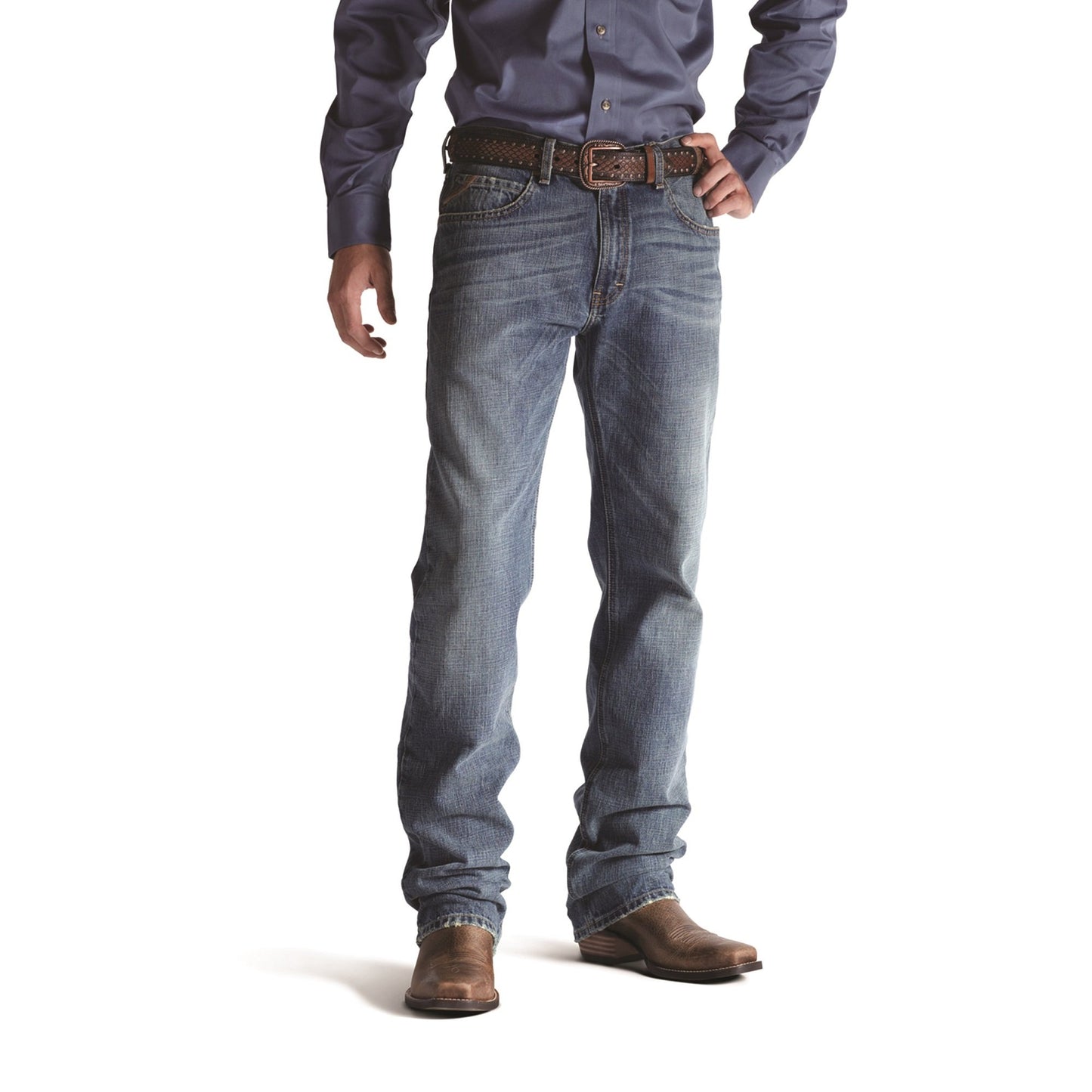 These men's M2 Granite jeans from Ariat have a classic appearance and stylish vibe. Their relaxed fit is ideal for moving around on the job. The medium wash denim is accented with hand sanding and grinding to create a well worn and on-trend look. The open back pockets have light embroidery that keeps the style minimal. The belt loops include Loop Lock technology that adds to their quality construction. The medium weight denim has the perfect balance of softness and durability. Pair them with your favorite cowboy boots every day of the week.