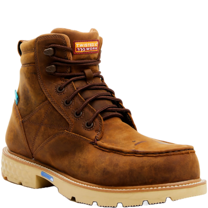 Twisted X Men's Waterproof Distressed Saddle Brown Work Boots MXCNW04