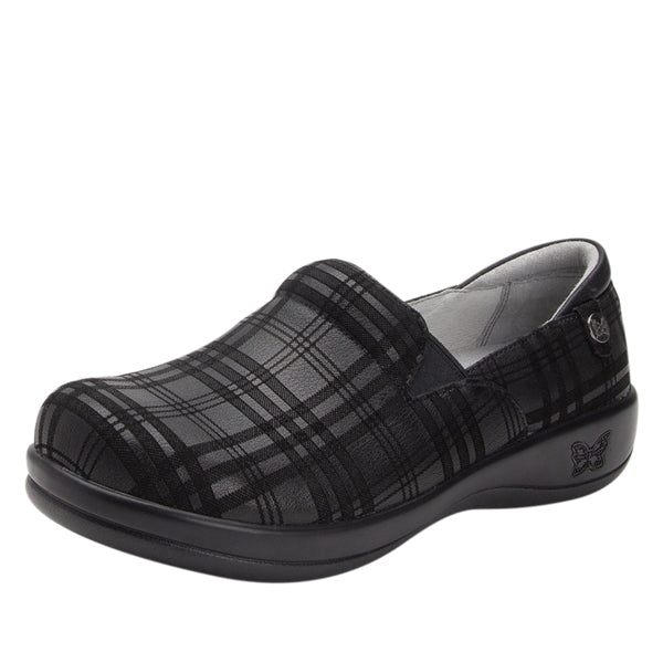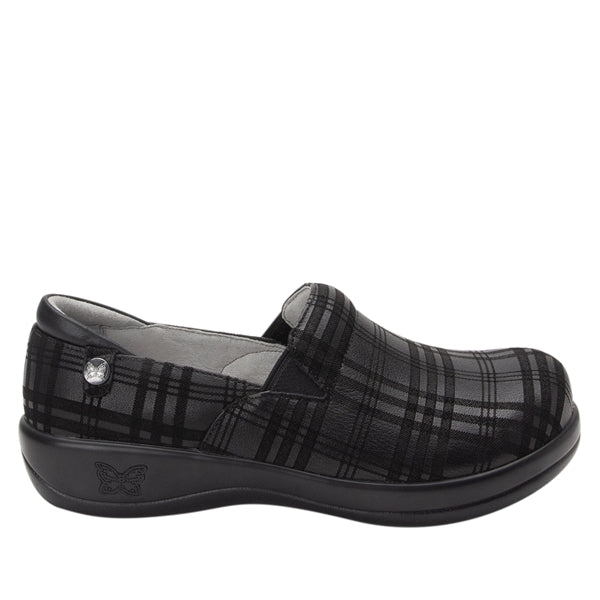 The Keli professional shoe by Alegria may already be your favorite shoe, but wait until you see the new Keli in Plaid to Meet You! This stylish and comfortable work shoe has been upgraded to a popping new black-on-black plaid pattern that will rock your wardrobe! Still slip-resistant and stain-resistant, you'll enjoy how comfortable this professional shoe is on your foot with its padded collar and double elastic gores at the sides for easy on-and-off wear. A gentle rocker outsole supports your foot as you slide it into the suede leather interior. It also comes with the signature Alegria removable and replaceable footbed that conforms to your foot for a perfect and customized fit. Slip into the Keli in Plaid to Meet You today!Features you'll find in all Alegria Keli shoes include: