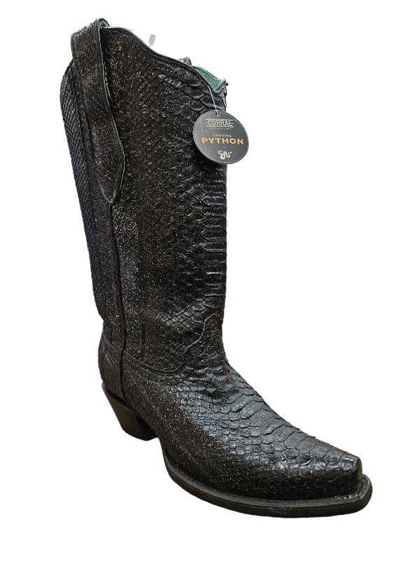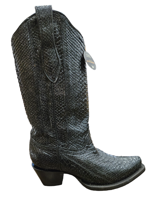 WOMEN'S BLACK GLITTER PYTHON CORRAL WESTERN BOOTS A4443