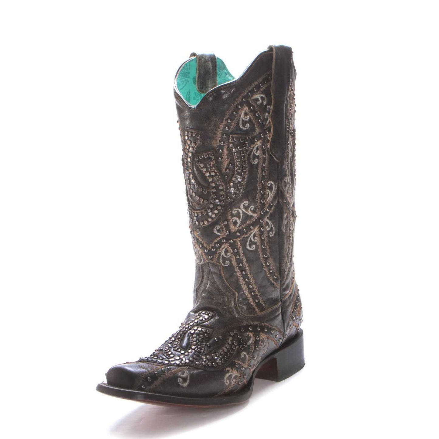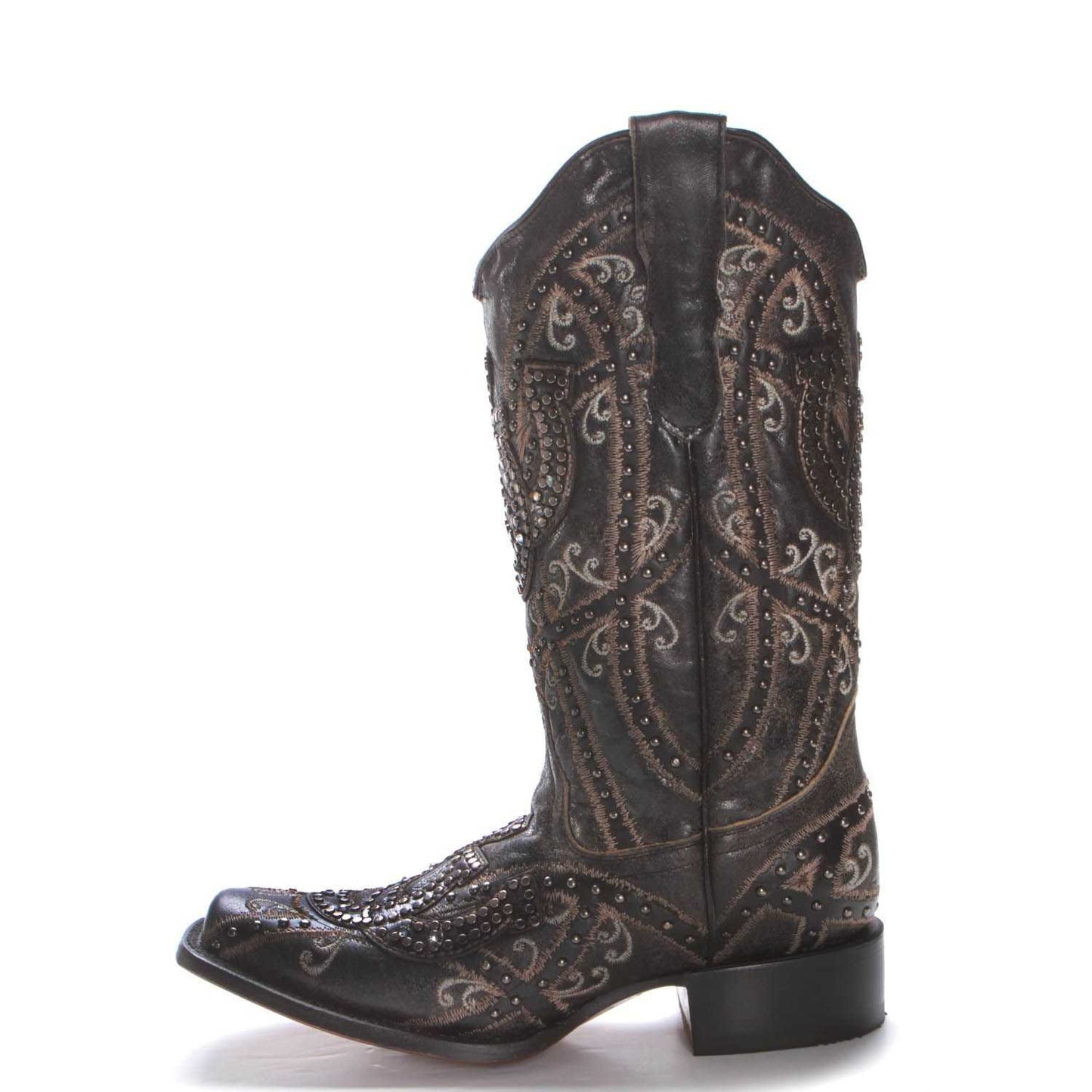 Women's Corral Black Shoe Horses Overlay & Stud Sq Toe E1616