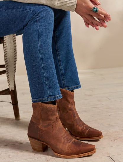 The Daisy is a classic zip bootie with an edge. Its snip toe, taller 2 ½” heel, and signature toe stitching (except in Sand Relic — whose scales speak for themselves) inspire attitude and confidence in every step, and a subtle inside zipper makes for easy-on comfort you’ll feel from the first time you zip ‘em up. We put everything we know into this fashion-forward beauty, and it shows. Available in cowhide, cowhide, suede, goat, and — for the more daring, exotic lizard in our Relic finish.